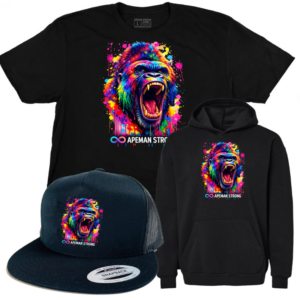 Purchase your 2026 exclusive merch at apemanstrong.com in April!