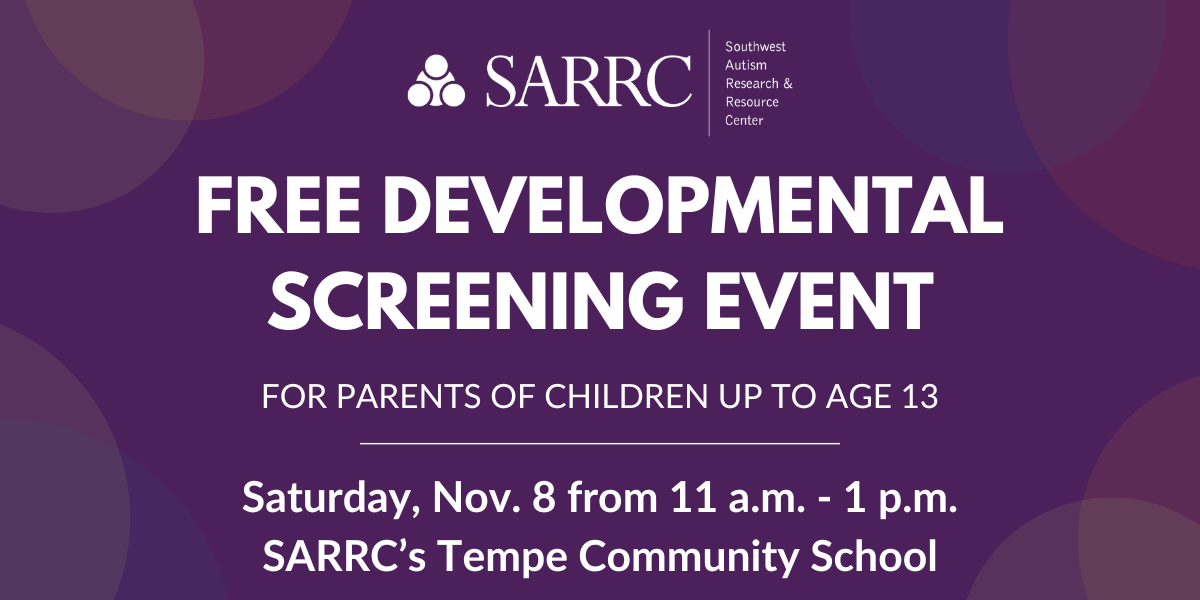 Southwest Autism Research & Resource Center (SARRC) is offering free developmental screenings at our Tempe campus (Located within the St. James Episcopal Church). Parents will have the opportunity to check their child’s progress, ask questions, and learn about our Comprehensive Behavior Program for children up to age 13.